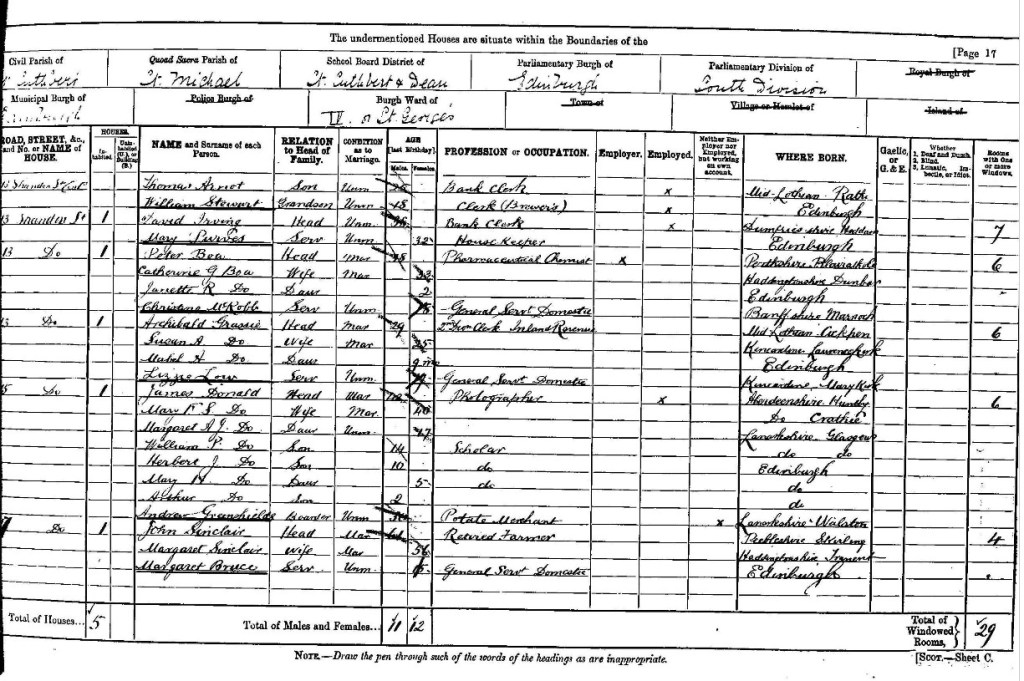 By 1891, Margaret had left home and at the age of 15 was living in St Michael’s, Edinburgh. There she was employed as a General Domestic Servant for a retired farmer named, John Sinclair and his wife, Margaret.