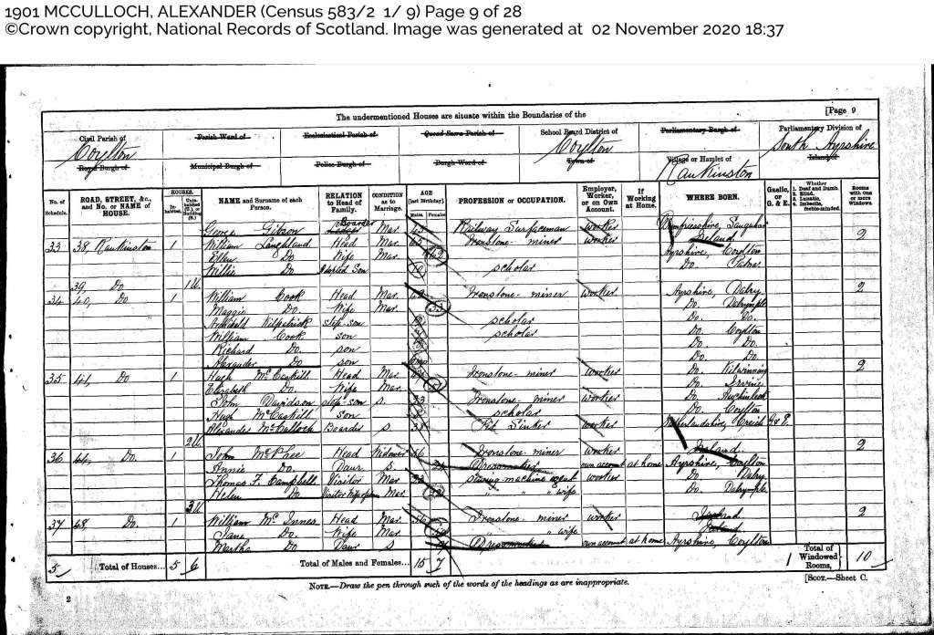 Alexander McCulloch 1901 Census – Boarder in Rankinston