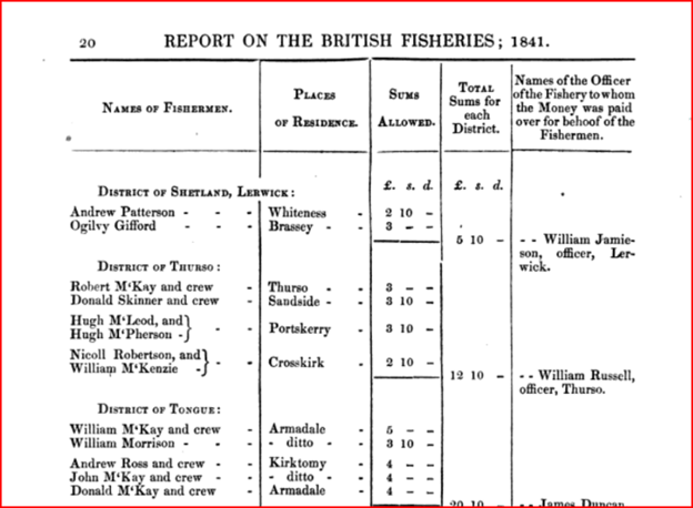 William remained in the post, working between Lerwick and Anstruther until 1821 when the Fishery Board decided that it was necessary to appoint four new officers to the Shetlands. William was appointed as the Principal Officer for Shetland.
