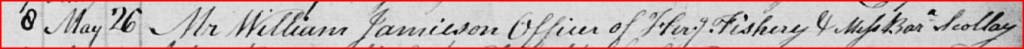 William was an educated man. This fact would have been a consideration for the recruiters. Fishery Officers had to handle payments of bounties, keep records, gather statistics and make reports to the Commissioners for the House of Commons.