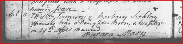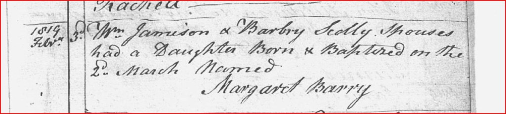 In Jan 1828, Barbara gave birth to a daughter, Isabella Harriot Jamieson.