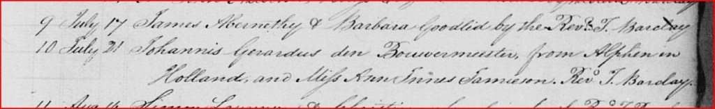 Two years later, their eldest daughter, Ann, married Dr Johannis Gerardus den Bouivermeister. Johannis who was known as John was a surgeon.