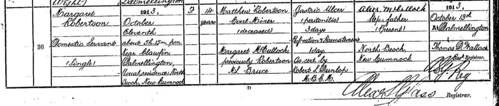 In 1913, the family were living in North Beoch, near New Cumnock, where Alexander was employed in the ironstone pit. Such frequent moves were common among mining families as they followed the opportunities. The children adjusted quickly, as children do, and Maggie set about making the new house homely. Yet, that summer, sorrow found them again.
