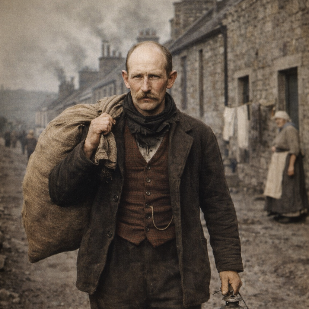 The coal industry staggered from slump to stoppage. Though Alexander was long past the age of hewing, he still did what he could, sweeping, polishing lamps, anything that kept him useful and kept a small wage coming in. Pride would not allow him to be idle. He had been shaped by a Highland childhood where every pair of hands mattered, and he carried that belief into old age.