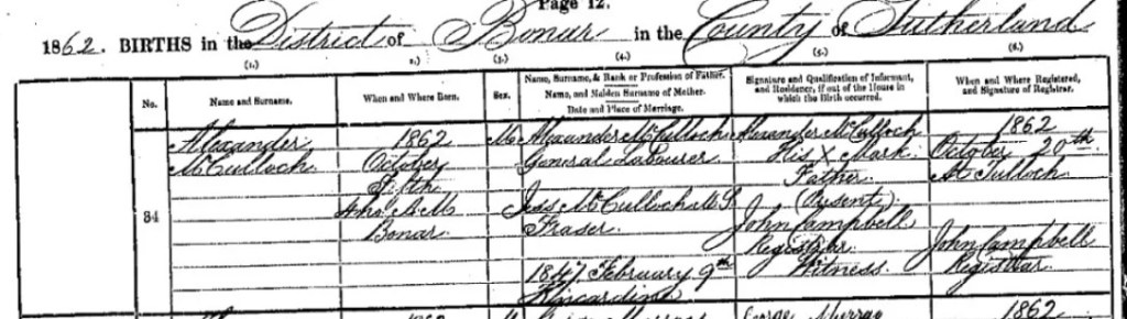 | Alexander McCulloch | Son | 8 | Scholar | Creich, Sutherland |