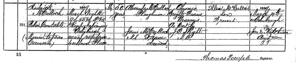In June 1874, Roderick married Johann Cameron, a young domestic servant from Edderton, whose life, like his own, had been shaped by the demands of estate. Not long after, he left the fields of Skibo to join the Police Constabulary, exchanging the demands of farm labour for the discipline of uniformed service. By the end of the decade, he was settled in Creich. His departure was a clear sign that the McCulloch children would not all stay tied to the land that had raised them.