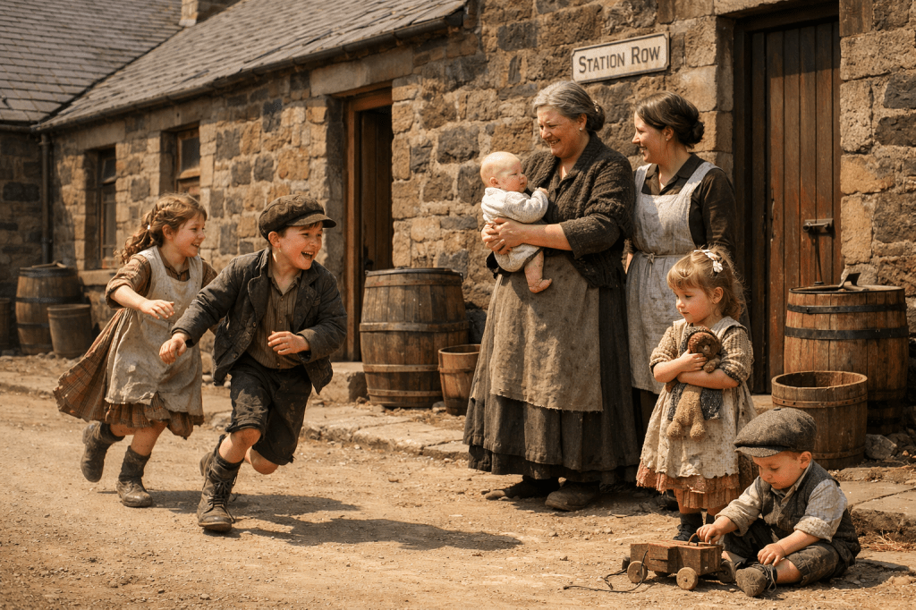Their young family filled the small house with noise and movement. Four‑year‑old John, born in Coylton, was already sturdy on his feet. Helen, two, followed close behind, and baby Alexander, just a year old, was still carried on Maggie’s hip. Alongside them were Maggie’s older children from her first marriage, Margaret, eleven, William, ten, and Sarah, seven, each attending the local school and already learning the discipline of early mornings in a mining village.