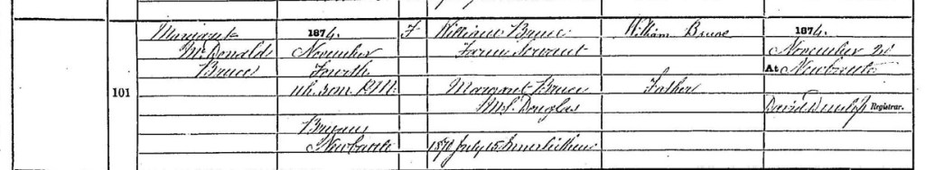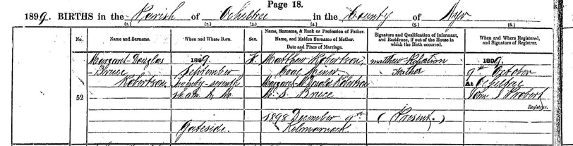 It was in Drongan, in September 1899, that Maggie gave birth to her first child, a daughter she named Margaret Douglas Bruce Robertson, honouring her mother’s family. A year later, in 1900, she delivered a son, William Robertson, named for both grandfathers. With two babies under two, Maggie’s days were full, her world bounded by the cottage, the washhouse, and the needs of her growing family. Yet she was not alone. By then, her parents lived only a mile north in Pottery Row, and it was to them that little Margaret was sent while Maggie recovered from William’s birth.